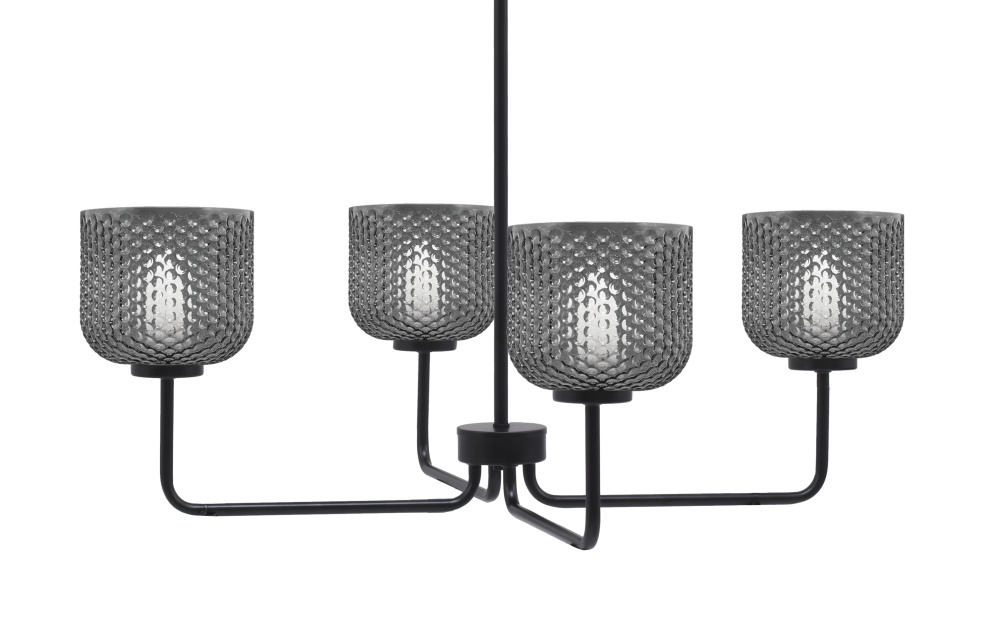 Sandia 4 Light Chandelier, Matte Black Finish, 6 Smoke Textured Glass