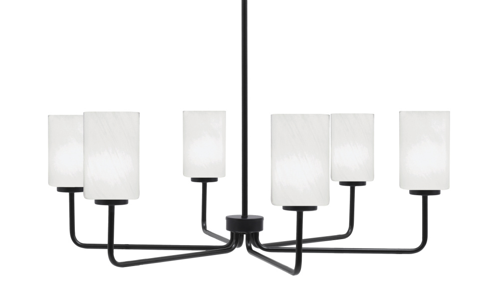 Sandia 6 Light Chandelier, Matte Black Finish, 4 White Marble Glass