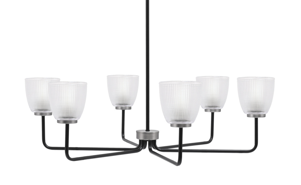 Sandia 6 Light Chandelier, Matte Black & Graphite Finish, 5 Clear Ribbed Glass