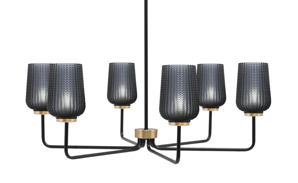 Sandia 6 Light Chandelier, Matte Black & New Age Brass Finish, 5 Smoke Textured Glass