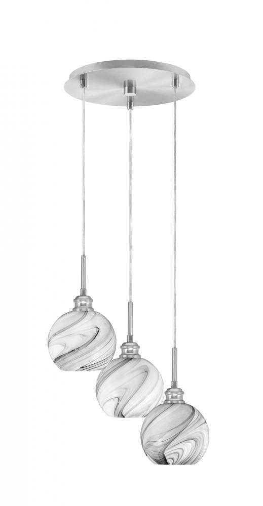 Toltec Lighting 1173-BN-4109 Edge 3 Light Cluster Pendalier, Brushed Nickel Finish, 5.75 Onyx Swirl Glass