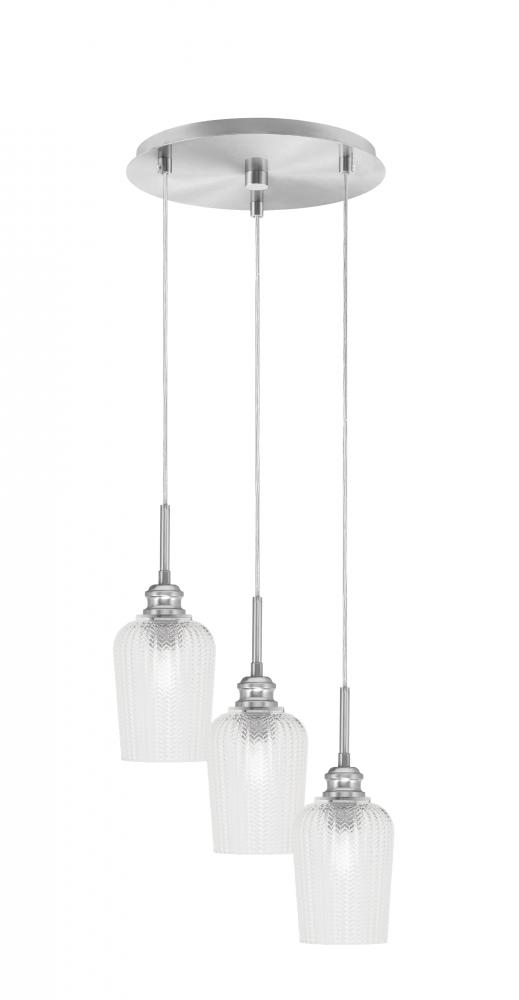 Toltec Lighting 1173-BN-4250 Edge 3 Light Cluster Pendalier, Brushed Nickel Finish, 5 Clear Textured Glass