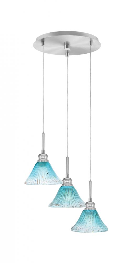 Toltec Lighting 1173-BN-458 Edge 3 Light Cluster Pendalier, Brushed Nickel Finish, 7 Teal Crystal Glass