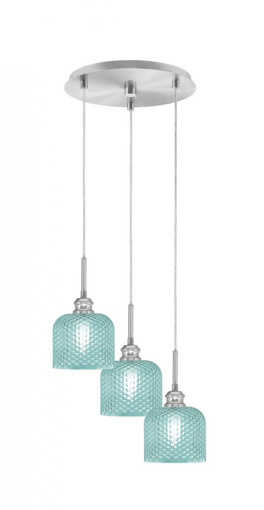 Toltec Lighting 1173-BN-4615 Edge 3 Light Cluster Pendalier, Brushed Nickel Finish, 6 Turquoise Textured Glass