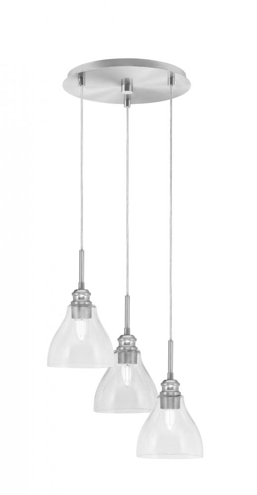 Toltec Lighting 1173-BN-4760 Edge 3 Light Cluster Pendalier, Brushed Nickel Finish, 6.25 Clear Bubble Glass