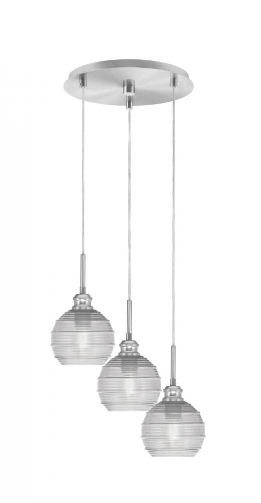 Toltec Lighting 1173-BN-5110 Edge 3 Light Cluster Pendalier, Brushed Nickel Finish, 6 Clear Ribbed Glass