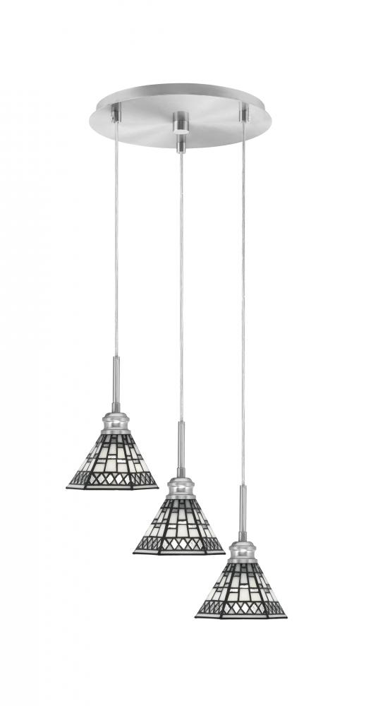 Toltec Lighting 1173-BN-9105 Edge 3 Light Cluster Pendalier, Brushed Nickel Finish, 7 Pewter Art Glass