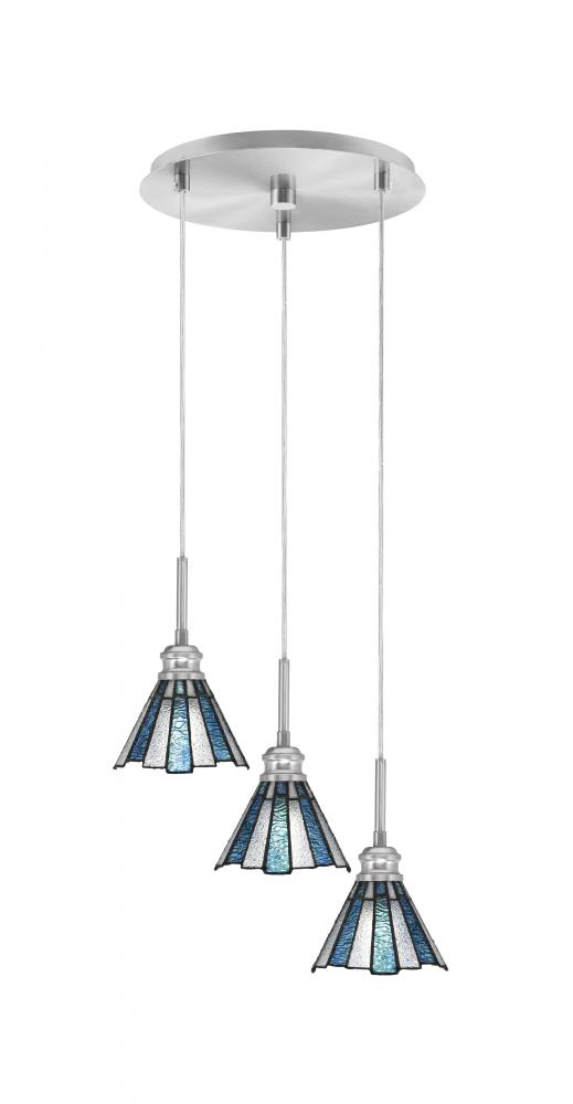 Toltec Lighting 1173-BN-9325 Edge 3 Light Cluster Pendalier, Brushed Nickel Finish, 7 Sea Ice Art Glass