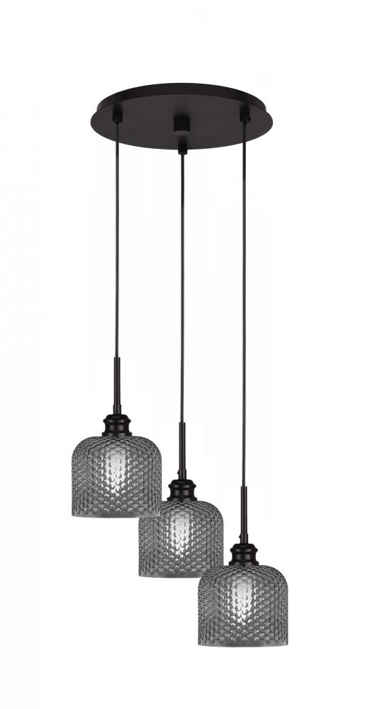 Toltec Lighting 1173-ES-4612 Edge 3 Light Cluster Pendalier, Espresso Finish, 6 Smoke Textured Glass