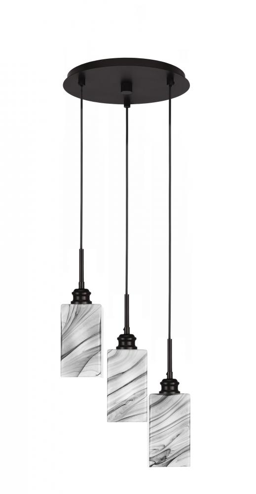 Toltec Lighting 1173-ES-549 Edge 3 Light Cluster Pendalier, Espresso Finish, 3.5 Square Onyx Swirl Glass
