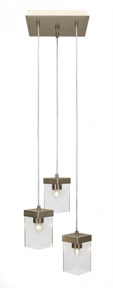 Toltec Lighting 3212-NAB-530 Nouvelle 3 Light Cord Hung Cluster Pendalier Shown In New Age Brass Finish With 4 Square Clear Bubble Glass