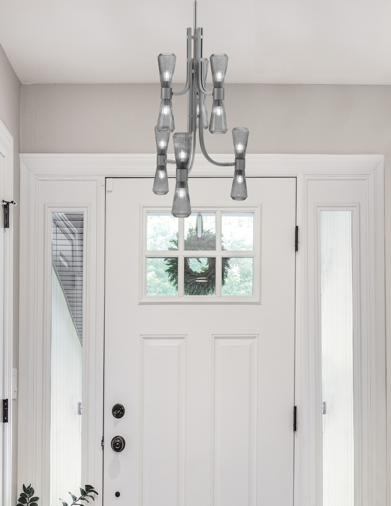 Everleigh 12 Light Chandelier Shown in Graphite Finish with 4" Smoke Glass