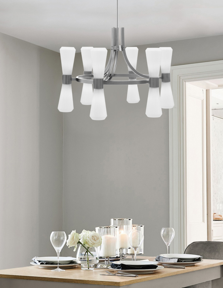 4846-GP-881 - Everleigh 12 Light Chandelier Shown in Graphite Finish with 4" White Glass
