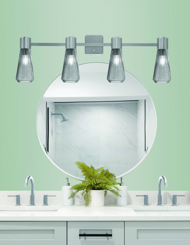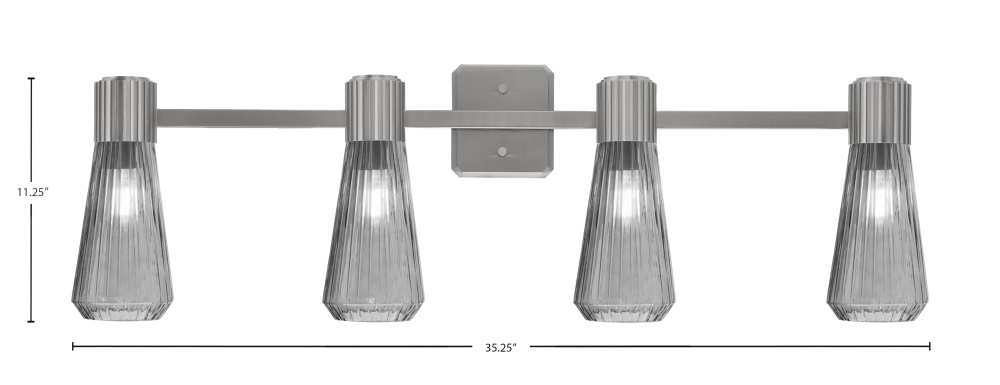 Sophisticated and moody, the Everleigh 4-Light Bath Bar brings elevated style to modern and transitional bathrooms. The graphite finish offers a sleek, contemporary foundation, while four 4? smoke ribbed glass shades deliver soft, atmospheric lighting with a touch of vintage character. The ribbed texture adds depth and visual interest, making this fixture both functional and decorative.