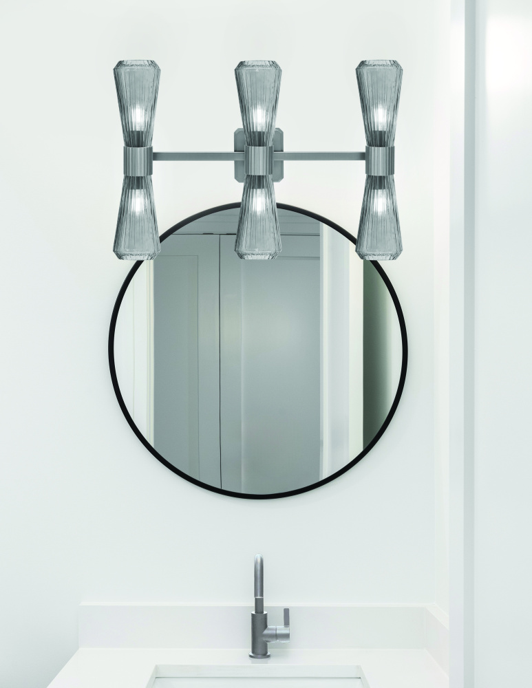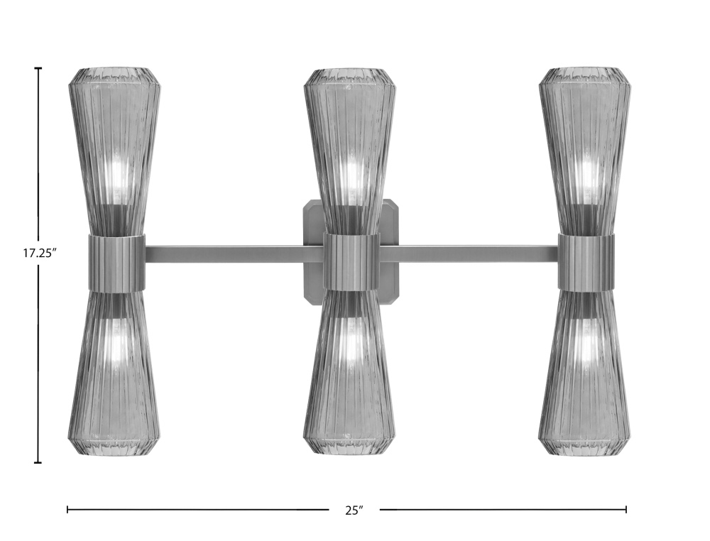 Elevate your bathroom with the bold and modern design of the Everleigh 6 Light Bath Bar. Finished in rich graphite, this fixture features six 4? smoke ribbed glass shades that diffuse light with a moody, ambient glow. The ribbed glass texture adds visual depth and a hint of retro-inspired elegance.