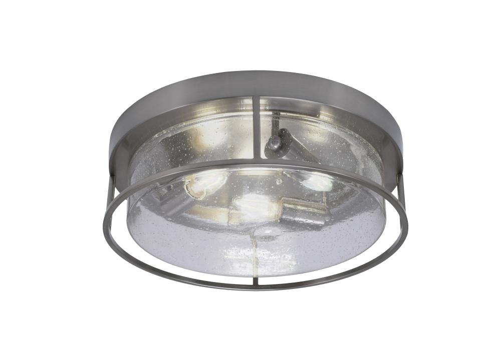 16 Flush Mount, 3-Bulbs, Shown In Brushed Nickel Finish With Clear Bubble Glass
