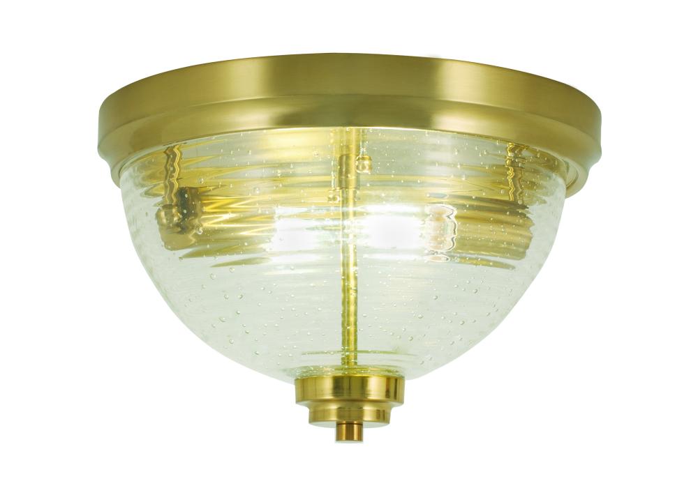 12 Flush Mount, 2-Bulbs, Shown In New Age Brass Finish With Ribbed Clear Bubble Glass