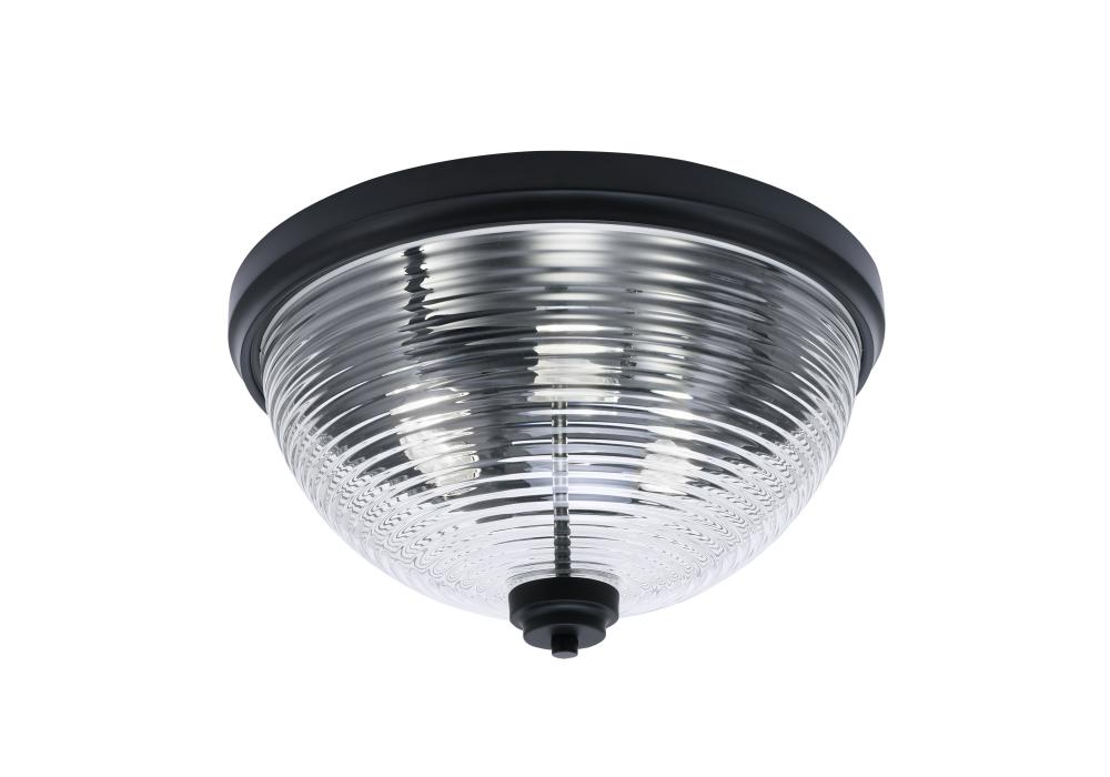 16 Flush Mount, 3-Bulbs, Shown In Matte Black Finish With Clear Ribbed Glass