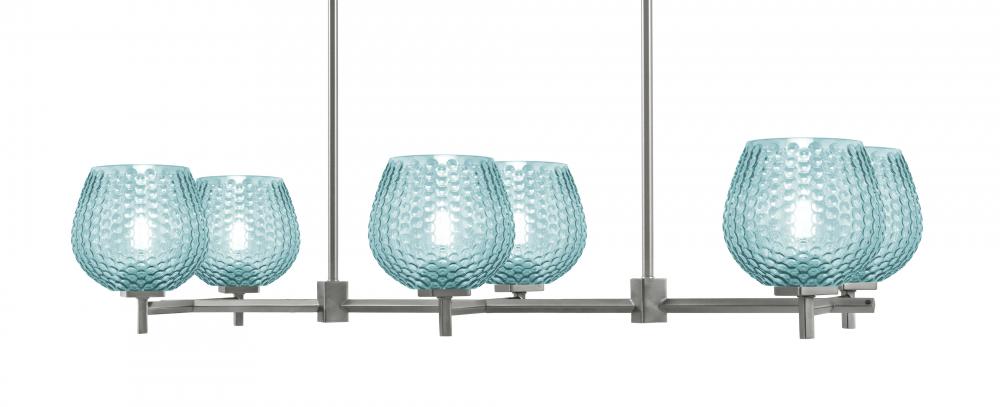 Franklin 6 Light Island Light Shown In Graphite Finish With 6 Turquoise Textured Glass
