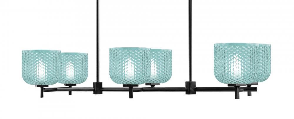 Franklin 6 Light Island Light Shown In Matte Black Finish With 6 Turquoise Textured Glass