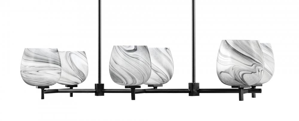 Franklin 6 Light Island Light Shown In Matte Black Finish With 6 Onyx Swirl Glass