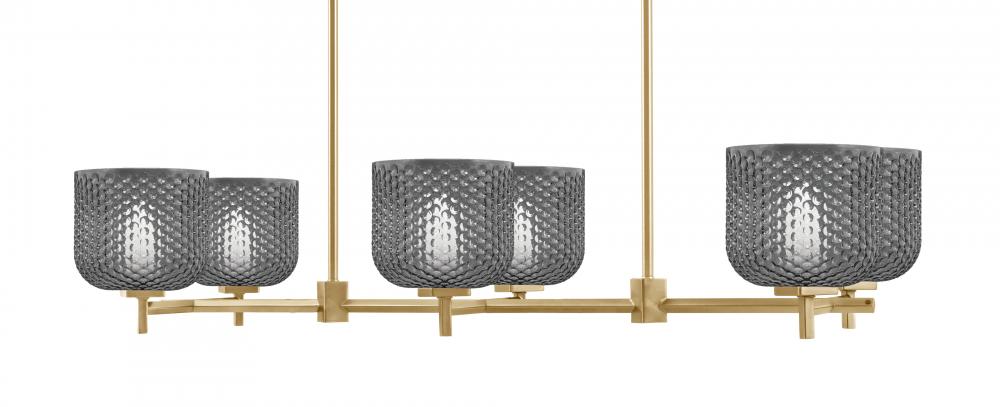 Franklin 6 Light Island Light Shown In New Age Brass Finish With 6 Smoke Textured Glass