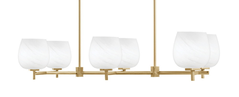 Franklin 6 Light Island Light Shown In New Age Brass Finish With 6 White Marble Glass