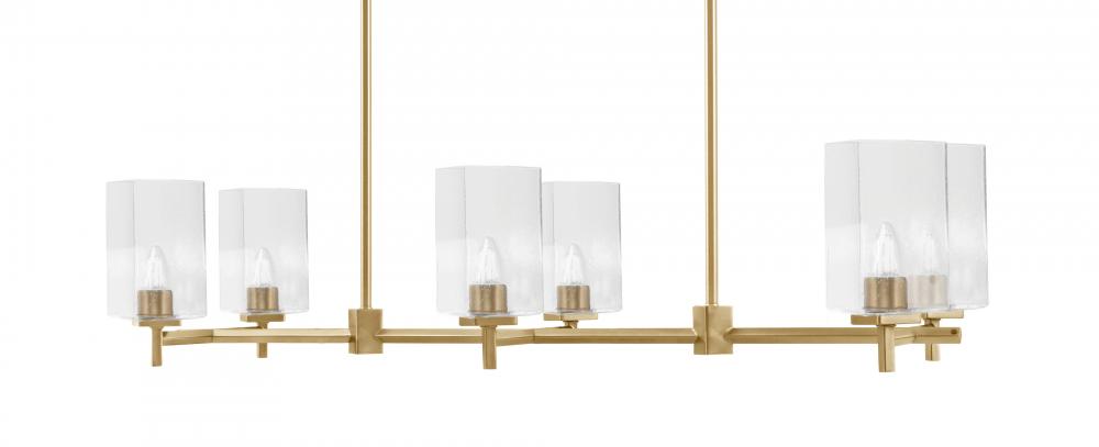 Franklin 6 Light Island Light Shown In New Age Brass Finish With 4 Square Clear Bubble Glass