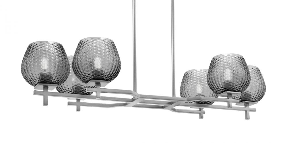 Corbin 6 Light Island Light Shown In Graphite Finish with 6 Smoke Textured Glass