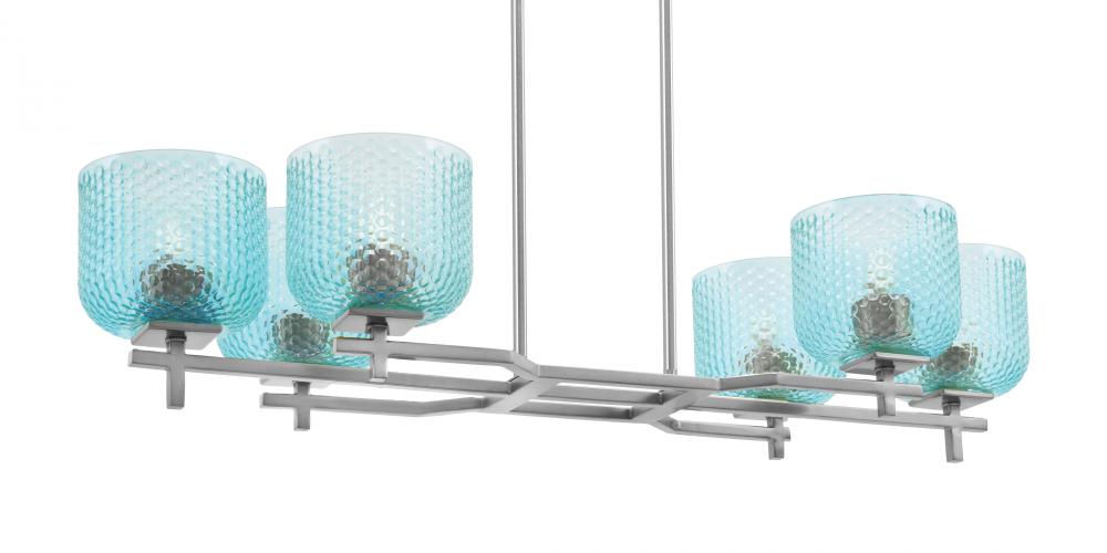 Corbin 6 Light Island Light Shown In Graphite Finish with 6 Turquoise Textured Glass