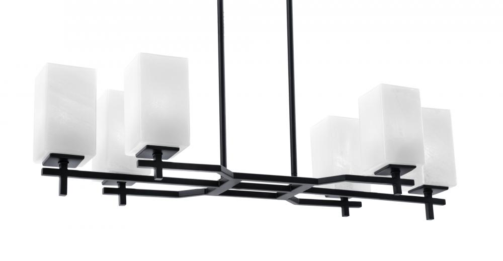 Toltec Lighting 2326-MB-541 Corbin 6 Light Island Light, Matte Black Finish, 3.5 Square White Marble Glass