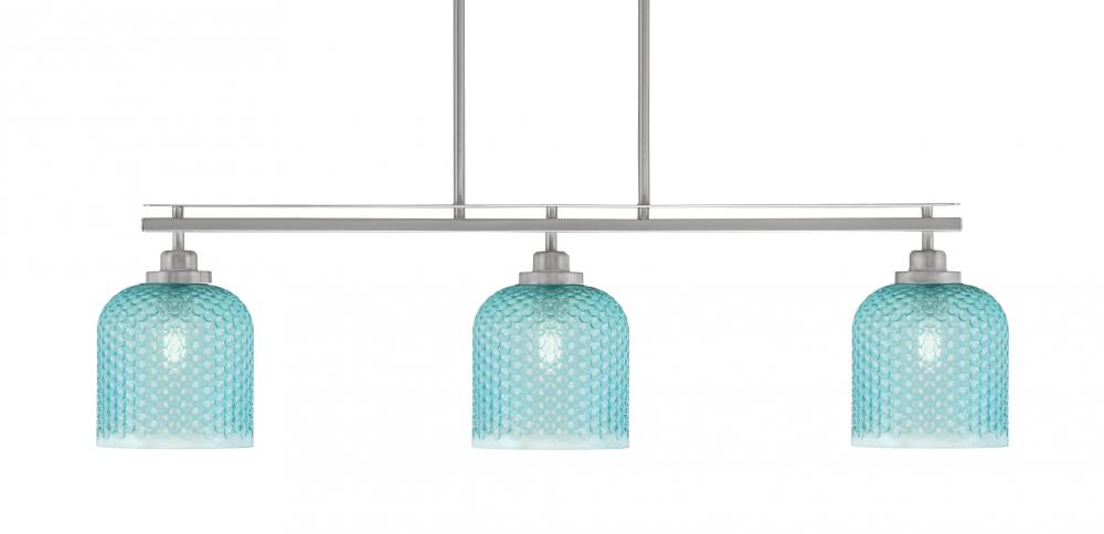 Odyssey 3 Light Island Light Shown In Brushed Nickel Finish With 7 Turquoise Textured Glass
