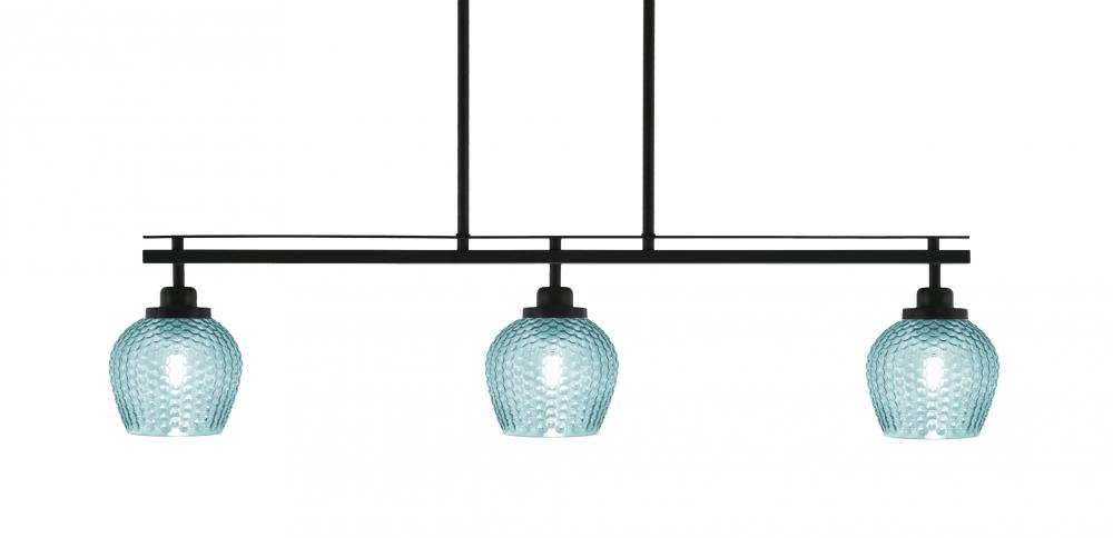 Odyssey 3 Light Island Light Shown In Matte Black Finish With 6 Turquoise Textured Glass