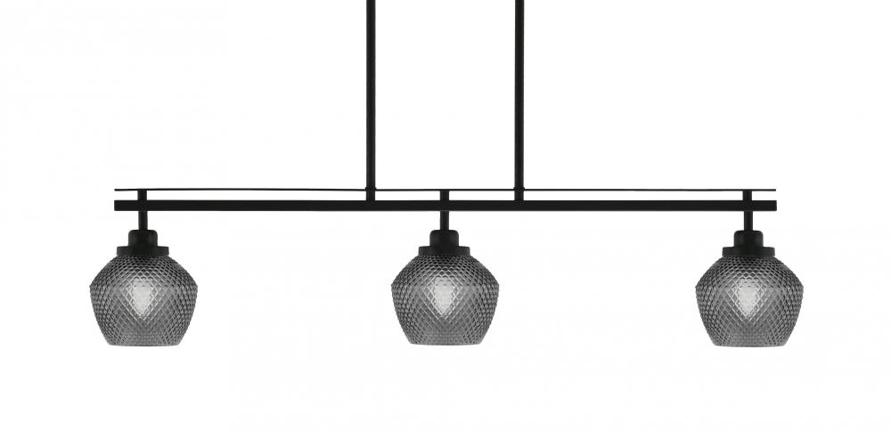 Odyssey 3 Light Island Light Shown In Matte Black Finish With 6 Smoke Textured Glass