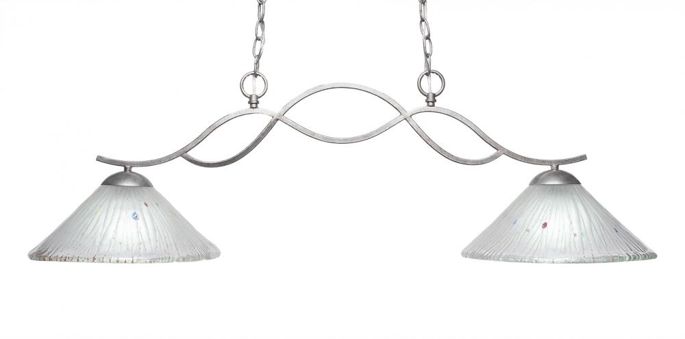Toltec Lighting 342-AS-701 Revo 2 Light Island Light Shown In Aged Silver Finish With 12 Frosted Crystal Glass