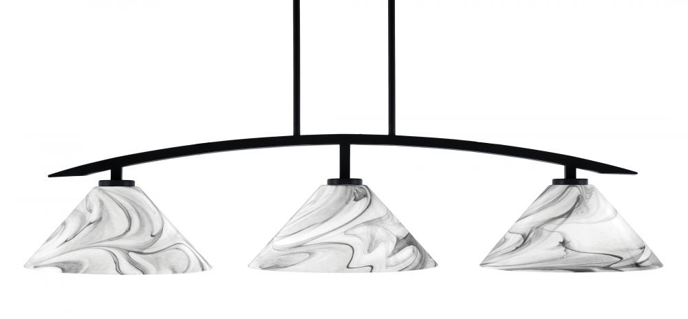 Toltec Lighting 3736-MB-2129 Kurve 3 Light Island Light, Matte Black Finish, 12 Onyx Swirl Glass