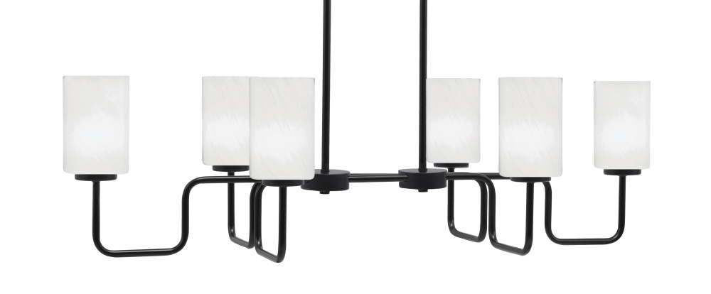 Sandia 6 Light Island Light, Matte Black Finish, 4 White Marble Glass