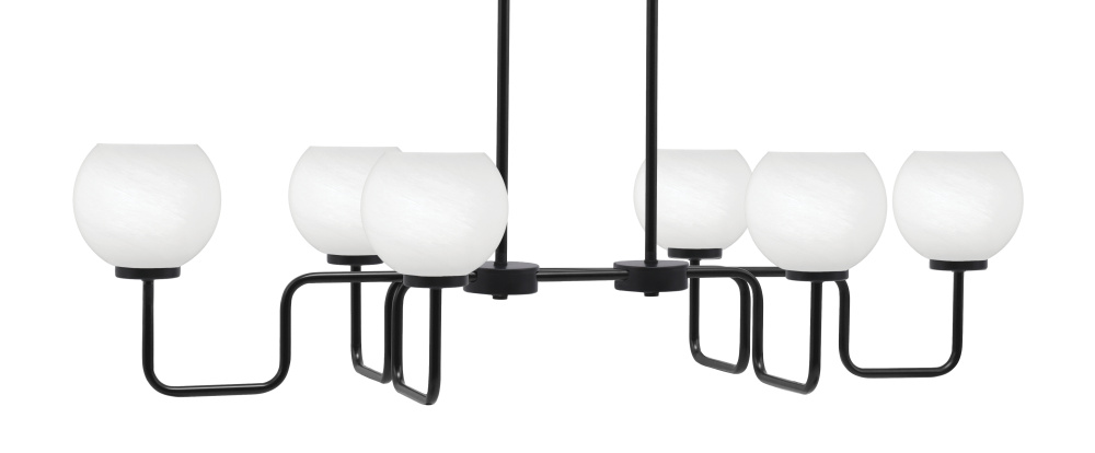 Sandia 6 Light Island Light, Matte Black Finish, 5.75 White Marble Glass