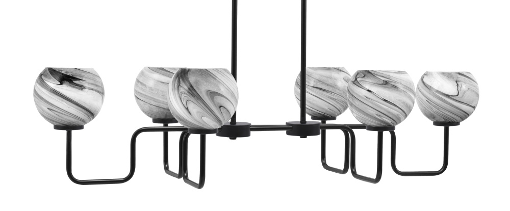 Sandia 6 Light Island Light, Matte Black Finish, 5.75 Onyx Swirl Glass