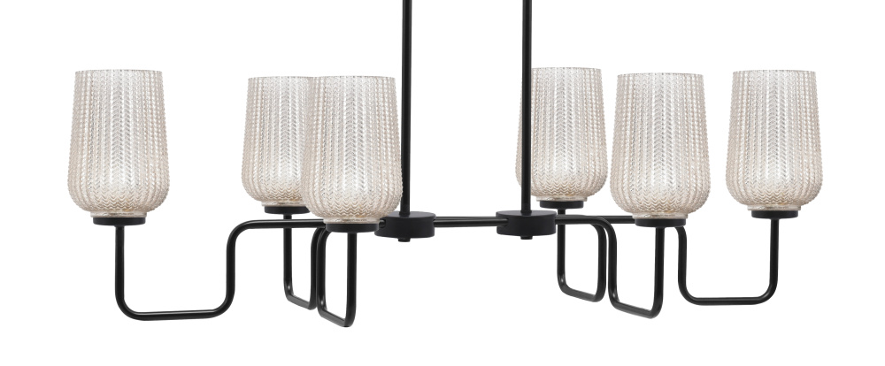 Sandia 6 Light Island Light, Matte Black Finish, 5 Silver Textured Glass