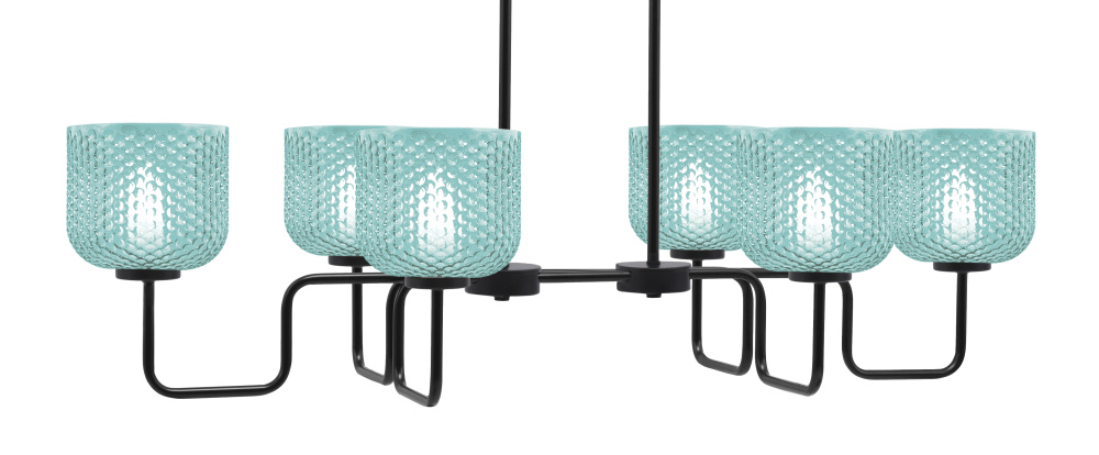 Sandia 6 Light Island Light, Matte Black Finish, 6 Turquoise Textured Glass