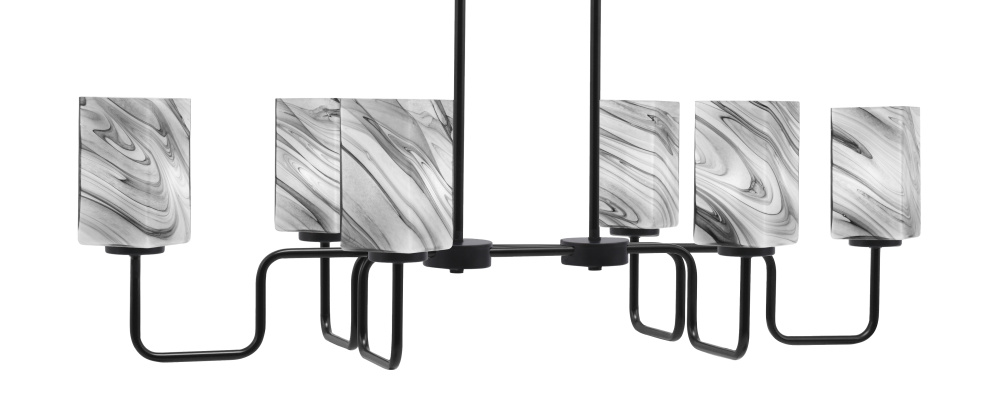 Sandia 6 Light Island Light, Matte Black Finish, 3.5 Square Onyx Swirl Glass
