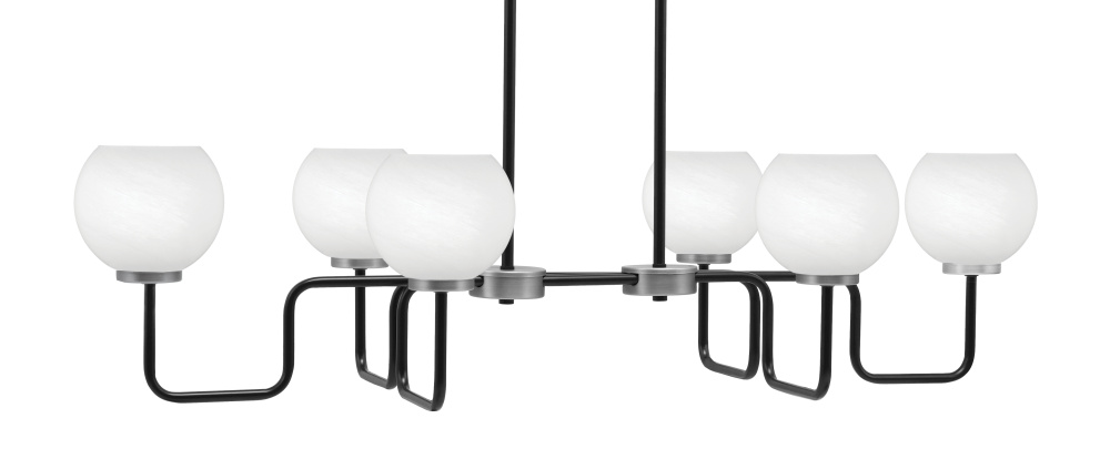 Sandia 6 Light Island Light, Matte Black & Graphite Finish, 5.75 White Marble Glass