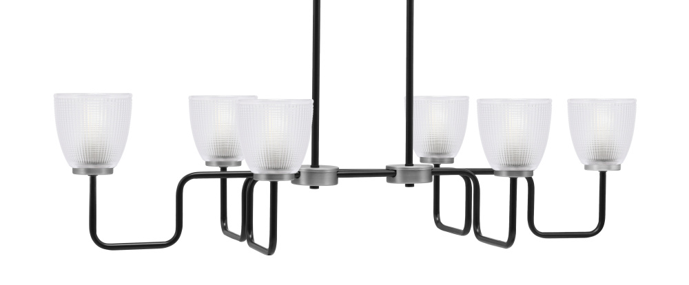 Sandia 6 Light Island Light, Matte Black & Graphite Finish, 5 Clear Ribbed Glass