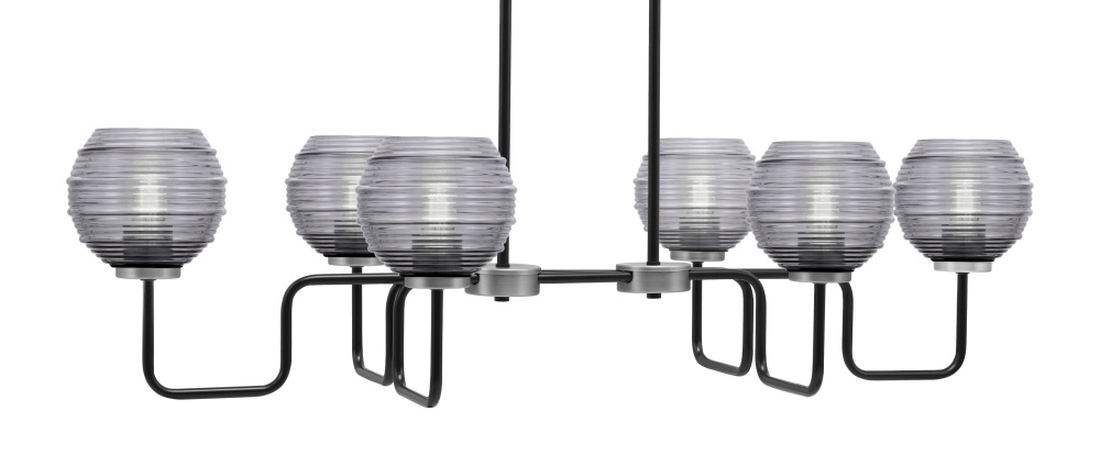 Sandia 6 Light Island Light, Matte Black & Graphite Finish, 6 Smoke Ribbed Glass