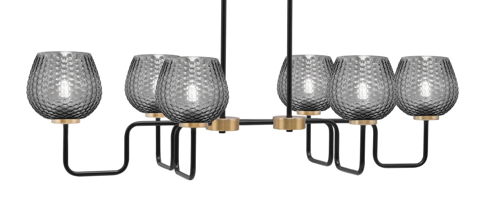 Sandia 6 Light Island Light, Matte Black & New Age Brass Finish, 6 Smoke Textured Glass