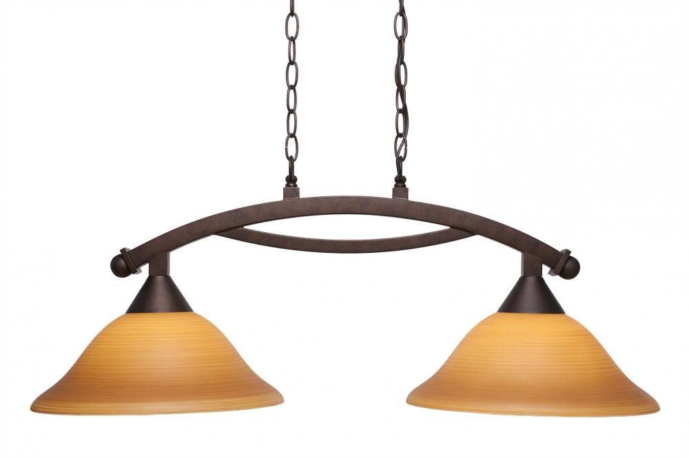 Toltec Lighting 872-BRZ-624 Bow 2 Light Island Light Shown In Bronze Finish With 12 Cayenne Linen Glass