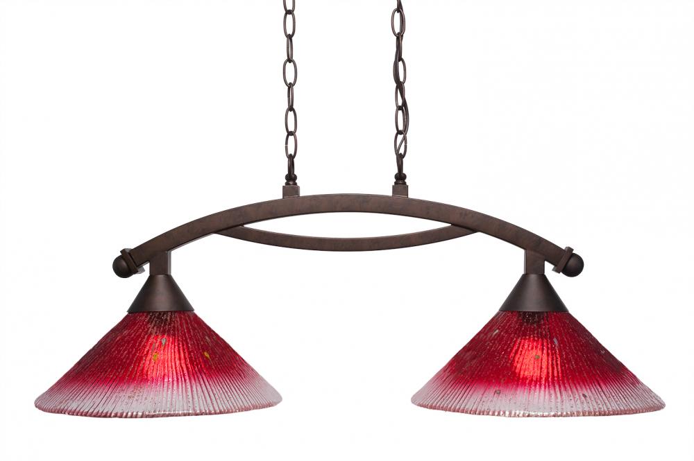 Toltec Lighting 872-BRZ-706 Bow 2 Light Island Light Shown In Bronze Finish With 12 Raspberry Glass