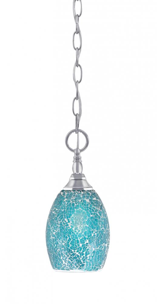 Toltec Lighting 11-CH-5055 Chain Hung Mini Pendant, Chrome Finish, 5 Turquoise Fusion Glass