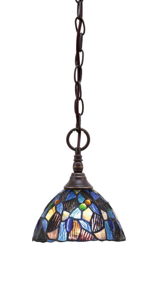 Toltec Lighting 11-DG-9955 Chain Hung Mini Pendant, Dark Granite Finish, 7 Blue Mosaic Art glass